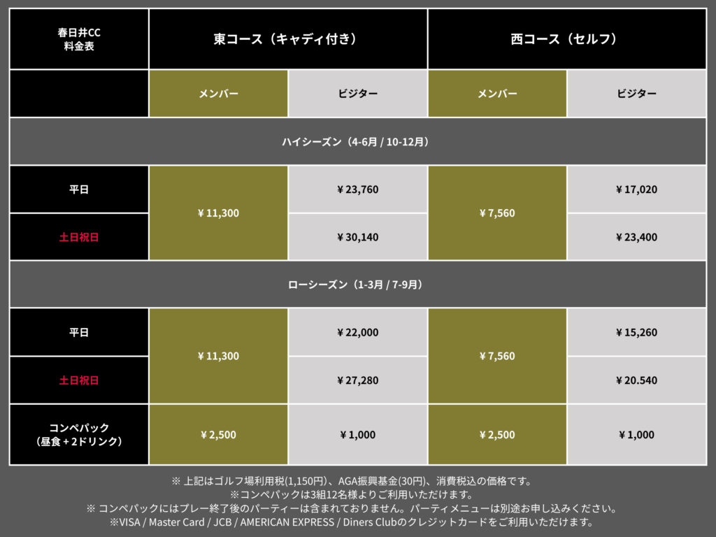 2名様でのラウンドとなった場合、全日においてメンバー様・ビジター様ともに割増料金が発生いたします。